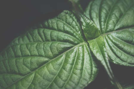 Selective focus closed up tropical summer green leaf dark tone background