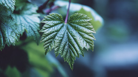 Close-up of a Beautiful Green Leaf with Intricate Veining, Showcasing Nature s Vibrant Vitality