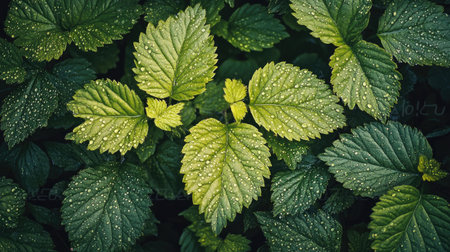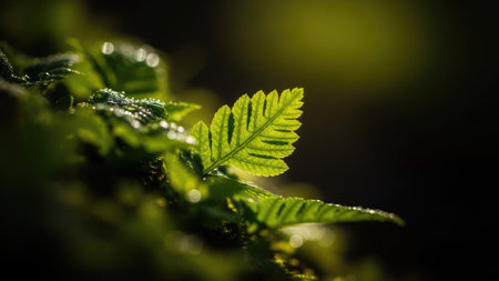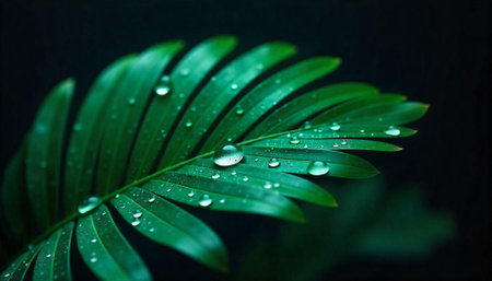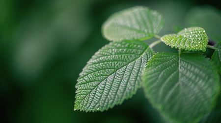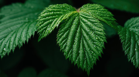 Vibrant green leaf with water droplets macro shot