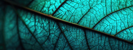 Blue tree leaf skeleton texture background with shining light, creating mesmerizing visual effect