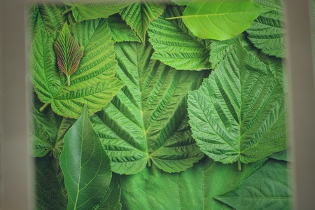 Real tropical leaves background, jungle foliage vintage