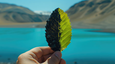 An eco credit card green leaf eco friendly sustainability recycled material finance payment hand natural texture minimalist design with calm mood