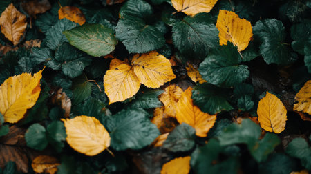 A stunning array of vibrant leaves displayed on a dark background showcases the beauty of nature. Ideal for creative projects, home decor, and artistic inspirations.