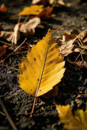 Autumn leaves in the forest, close-up, selective focus