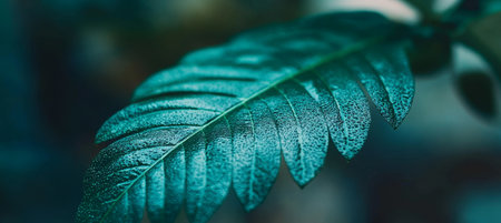 Close Up of Stunning Verdant Leaf, Showcasing Intricate Greenery Details Against Dark Background