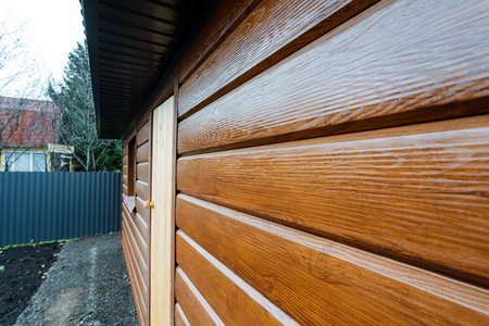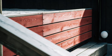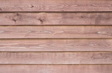 wooden clapboard background of textured siding painted in orange color with horizontal lines and nobody as empty or blank backdrop
