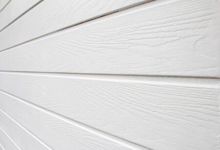This image features a smooth, textured white wood siding with a clean finish, ideal for showcasing home exteriors or architectural designs in bright settings.