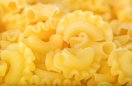 Hard pasta made from wheat flour, typical food from Italy, with great calorific value and high content of fast absorbing carbohydrates.