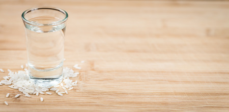Glass with Sake (selective focus) on an old wooden table