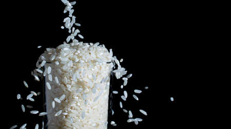 white rice poured into a glass, splash