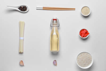 Composition with rice vinegar on light background