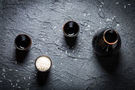 Closeup of sake in Asian restaurant on black rock