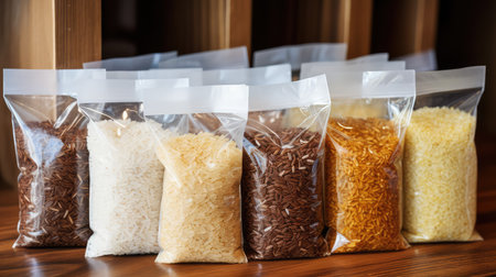 jasmine rice and brown rice and rice berries in vacuum bag