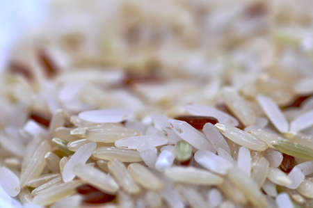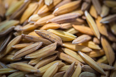 Macro shot of mixed raw rice agricultural product, shallow depth of field