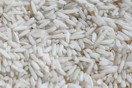 Close up of grains of jasmine rice. Rise grain background. White raw rice. Unpolished rice dryer. Rise pattern.