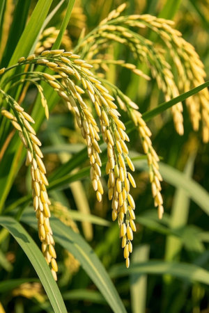 Vibrant Fresh Yellow Rice Ears - High Quality Stock Photo