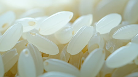 Closeup of white rice grains, textured background, highresolution detail