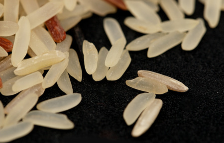 white rice on a black background. macro