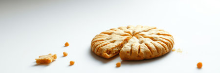 Broken cookies with crumbs isolated on a white background. Delicious baked dessert.