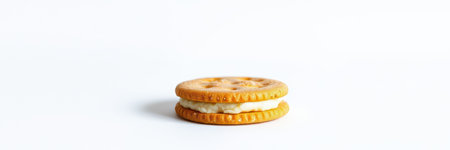 Delicious cream-filled cookie displayed against a clean white background for an appealing treat visual