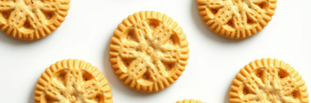 Delicious golden cookies stacked on a white background ready for a sweet treat experience