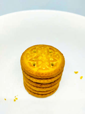 Raisin cookies or biscuit with crumbs flavor. Isolated on white background.