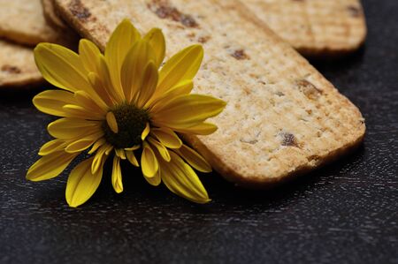 Sweet Crunchy Crackers isolated on abstract background. Flay Lay. Copy Space.
