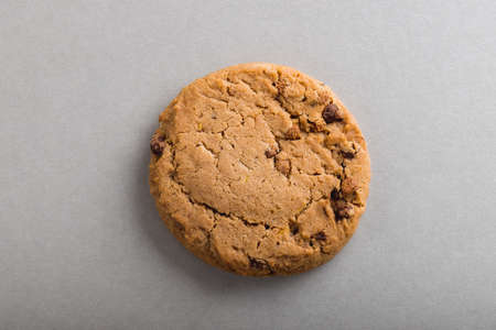 Overhead shot of cookie on gray background with copy space. unaltered, food, still life, studio shot.