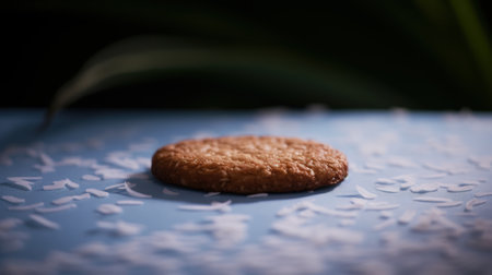 Sweet, intricate biscuit displayed on a smooth surface with warm lighting and detailed patterns in focus