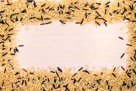 Various rice close-up, healthy food, black background. Asian cuisine. Header banner mockup with copy space. AI generated.