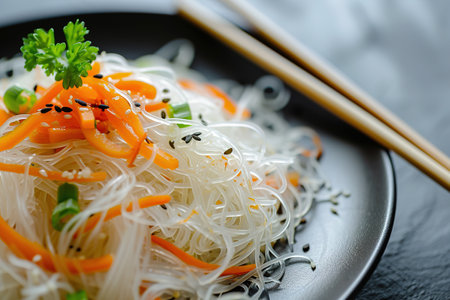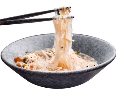 Delicious Asian rice glass noodles with vegetables. Image for cafe and restaurant menus