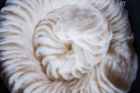 Dried rice noodles Bun.Dried rice noodles close up. Raw noodles background. No People.