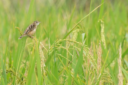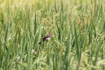 Scaly- Breasted Munia Bird Holding On Rice Plant And Eating the Paddy