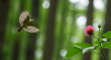 Generative AI : Beautiful bird Yellowbellied Fairyflycatcher rest on branch in nature