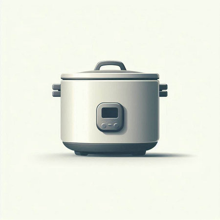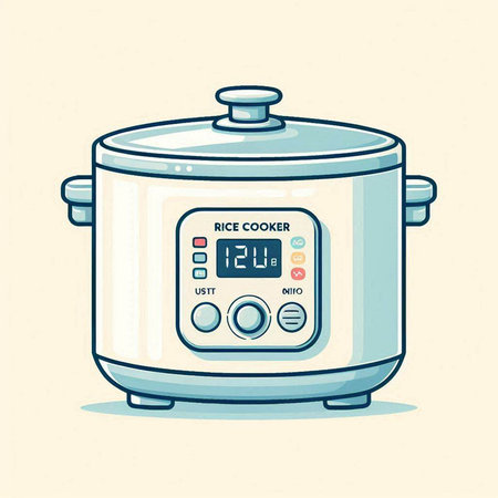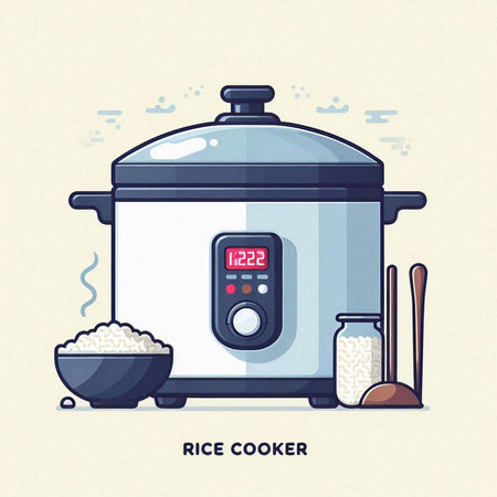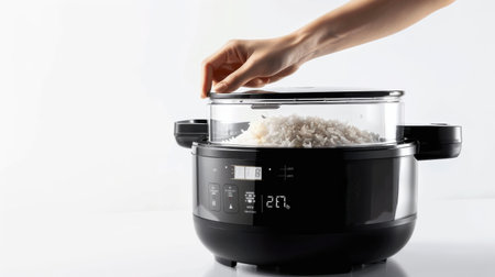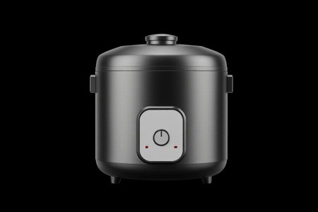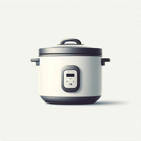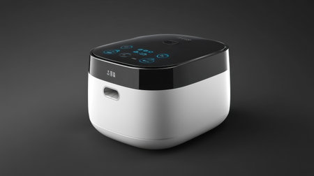 This modern electric rice cooker showcases sleek design and digital controls, creating a perfect addition to any kitchen while effortlessly preparing delicious meals.