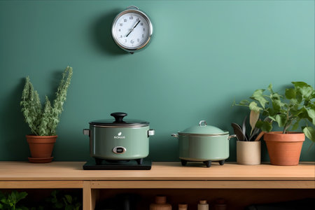 Efficient Cooking: Electric Stove and Pot Inspire Culinary Creativity in a Vibrant Kitchen Setting