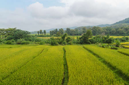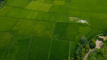 Green rice field in the countryside of Thailand. Beautiful nature background.