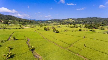 Aerial view beautiful terraced rice fields, Tangerang, Indonesia