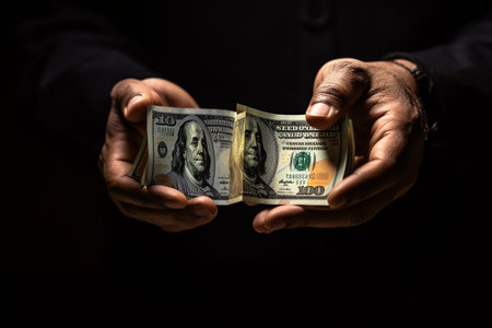 Generative AI : human hands holding money dollars 100 US dollar banknote isolated on white background
