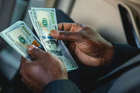 hand recount dollars. the man counts the money. new hundred-dollar bills