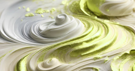 A swirling mixture of cream in pastel shades forming an abstract teardrop shape in a macro view.