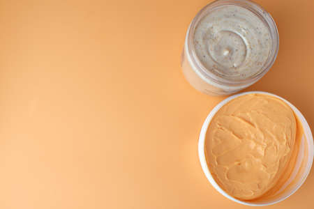 A smear of cream or face mask. The appearance of the texture of the cream on orange background. Skincare products , natural cosmetic. Beauty concept for face and body care