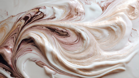 This abstract image captures swirling patterns of cream and brown tones in a liquid form, evoking a sense of motion and elegant beauty. Its smooth textures create a dreamy backdrop for various creative projects.