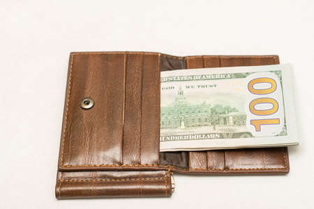 old leather wallet with a trifle, no money, waiting for a salary, inflation