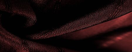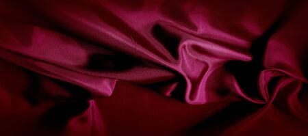 Silk fabric with viscose. Color burgundy. Texture, background, pattern.