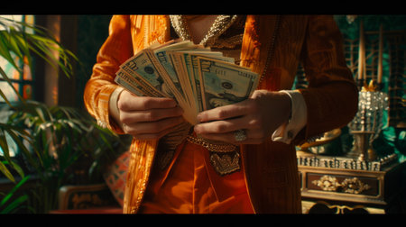 A person holds a stunning bouquet of money, their hands overflowing with wealth and abundance.