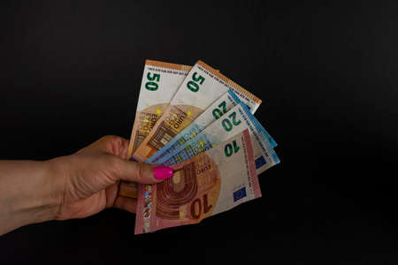 A female hand piking up or counting money in the wallet. Budget for travelling or purchacing.