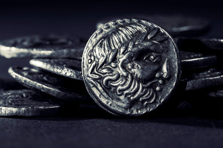 30 pieces of silver - a payment to Judas Iscariot from the Jewish chief priests for betraying Jesus Christ, Bible, religion catholic Christianity, Israel history