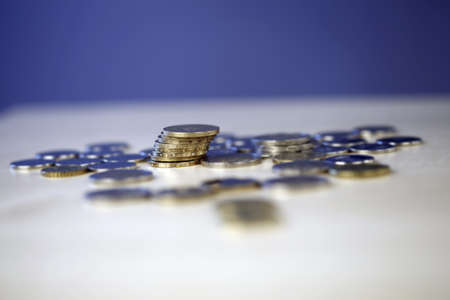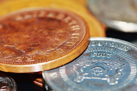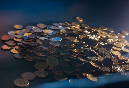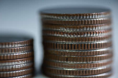 copper small coins close-up, coin stacked together in piles used for calculations in the state