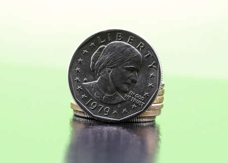 Vintage looking Dollar coins 1 cent wheat penny cent currency of the United States useful as a background